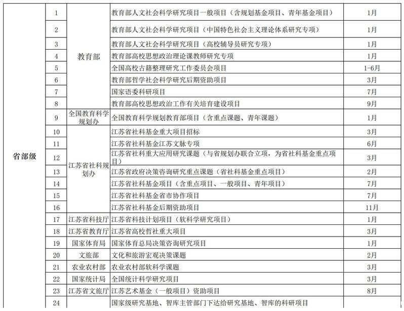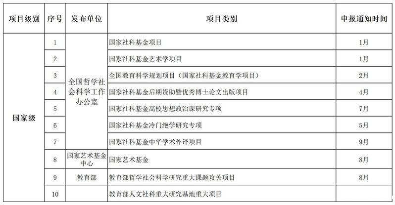 社科类纵向项目申报时间安排