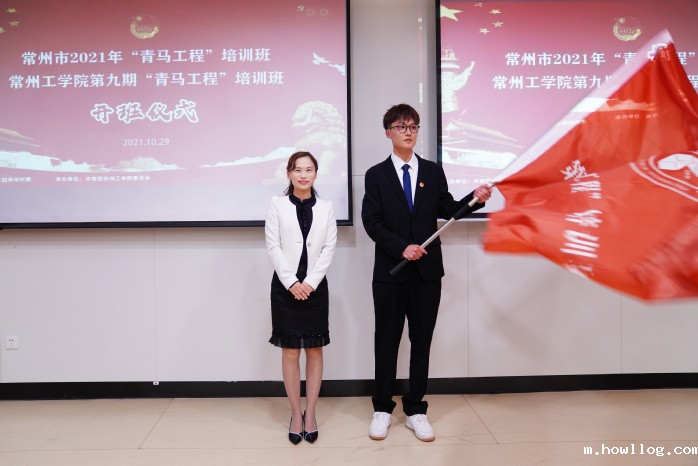 开班仪式在《中国共产主义青年团团歌》歌声中拉开序幕。第八期“青马工程”培训班优秀学员代表张琛发言,她表达了自己对“青马”内涵的理解,号召全体“青马”学员要从各方面塑造自我,做好先锋模范,努力成为新时代的合格建设者和接班人。随后,许文婷和顾勇为第八期“青马工程”培训班的优秀学员代表颁发荣誉证书。吕莹璐为第九期“青马工程”培训班临时团总支授旗。接着,第九期“青马工程”培训班学员代表田沛原发言,他代表全体学员从思想上、学习上、工作上作出郑重承诺,立志成为有能力、有骨气、有底气的新时代强国青年。